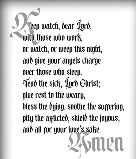 When the Anglican priest Tish Harrison Warren had a miscarriage, she was haunted by a grief that kept her awake in the night for hours on end. So she prayed the Compline, the “prayer in the night” from The Book of Common Prayer.19 Not having to dream up new words to pray made the Compline a kind of life jacket for whenever the nighttime felt unbearable: