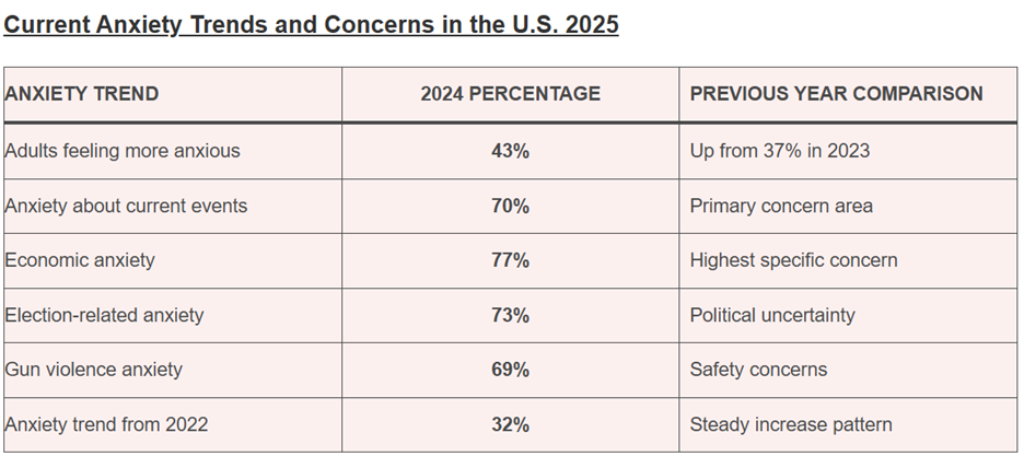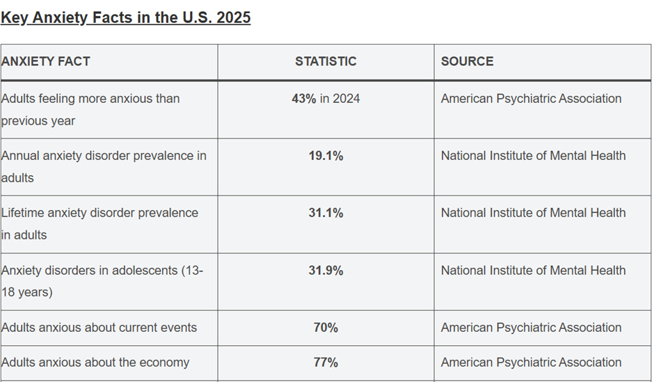 Every year, The Global Statistics throws together a meta-analysis of studies, surveys, and research on anxiety. Unsurprisingly, everyone’s pretty anxious: