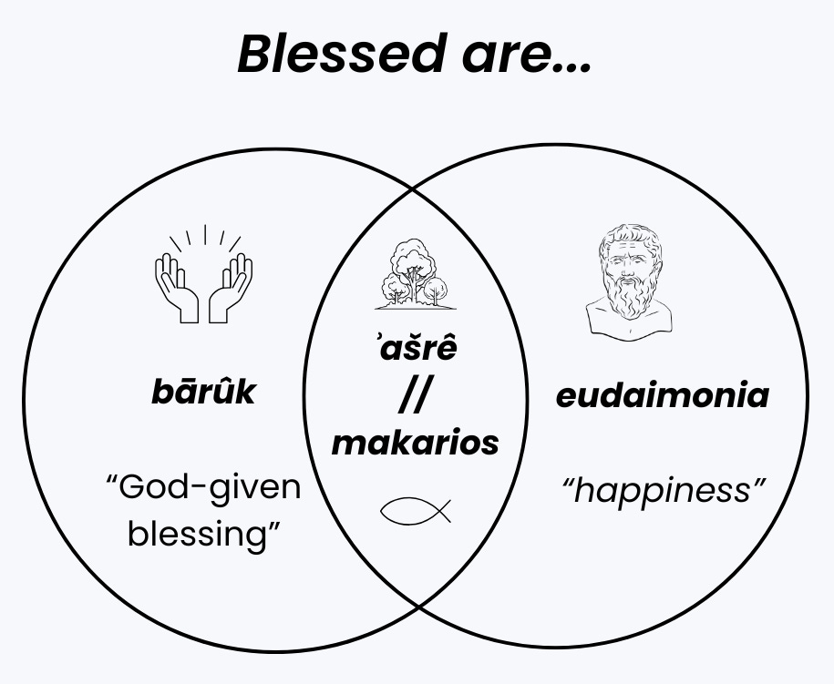 Whereas Jewish culture zeroed in on what made a person “blessed” (ʾašrê or bārûk), the Greeks were more fixated on “happiness” (eudaimonia and/or makarios).7 Jesus triggers both ideas.